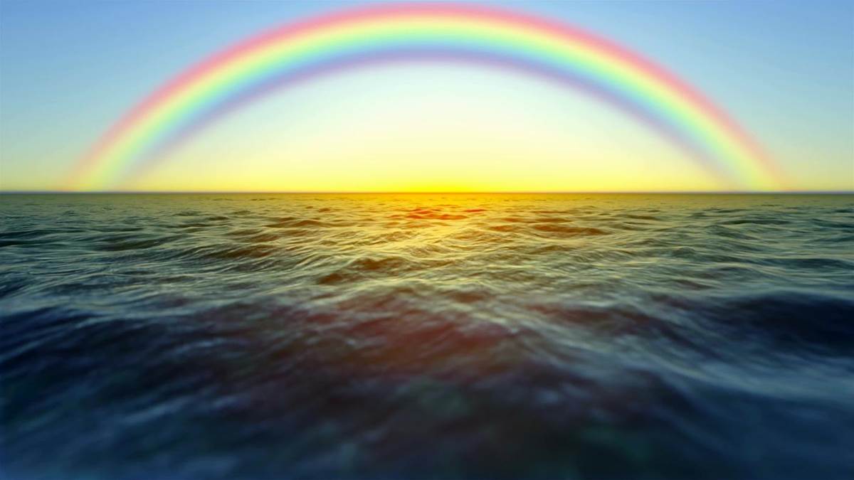 姜淳于站甲板,扶著舷,著橫跨彩虹。