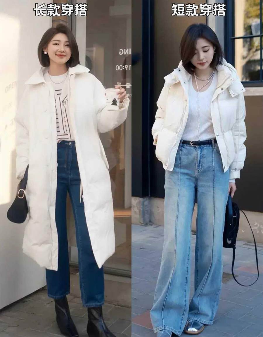 對比圖4:白色長款羽絨服和白色短款羽絨服