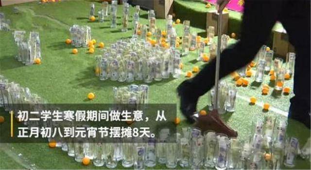這位國中生名叫小楊,在父母那裡要了幾百塊錢, 從市場上購買了一些玻璃杯以及乒乓球,在玻璃杯中,他塞入了面額不等的錢幣。